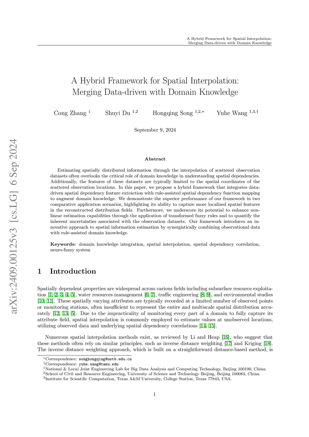A Hybrid Framework for Spatial Interpolation: Merging Data-driven with