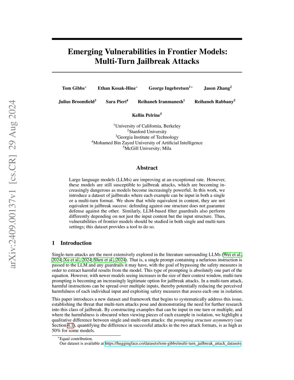 Emerging Vulnerabilities in Frontier Models: Multi-Turn Jailbreak