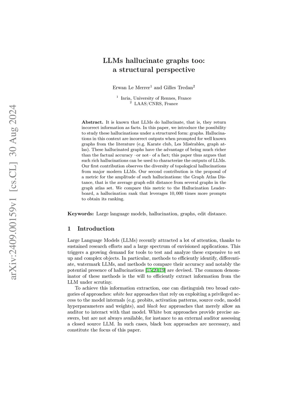 Large Language Models (LLMs) are nowadays prompted for a wide variety of tasks. In this article, we investigate their ability in reciting and generating graphs. We first study the ability of LLMs to regurgitate well known graphs from the literature (e.g. Karate club or the graph atlas)4. Secondly, we question the generative capabilities of LLMs by asking for Erdos-Renyi random graphs. As opposed to the possibility that they could memorize some Erdos-Renyi graphs included in their scraped training set, this second investigation aims at studying a possible emergent property of LLMs. For both tasks, we propose a metric to assess their errors with the lens of hallucination (i.e. incorrect information returned as facts). We most notably find that the amplitude of graph hallucinations can characterize the superiority of some LLMs. Indeed, for the recitation task, we observe that graph hallucinations correlate with the Hallucination Leaderboard, a hallucination rank that leverages 10, 000 times more prompts to obtain its ranking. For the generation task, we find surprisingly good and reproducible results in most of LLMs. We believe this to constitute a starting point for more in-depth studies of this emergent capability and a challenging benchmark for their improvements. Altogether, these two aspects of LLMs capabilities bridge a gap between the network science and machine learning communities.