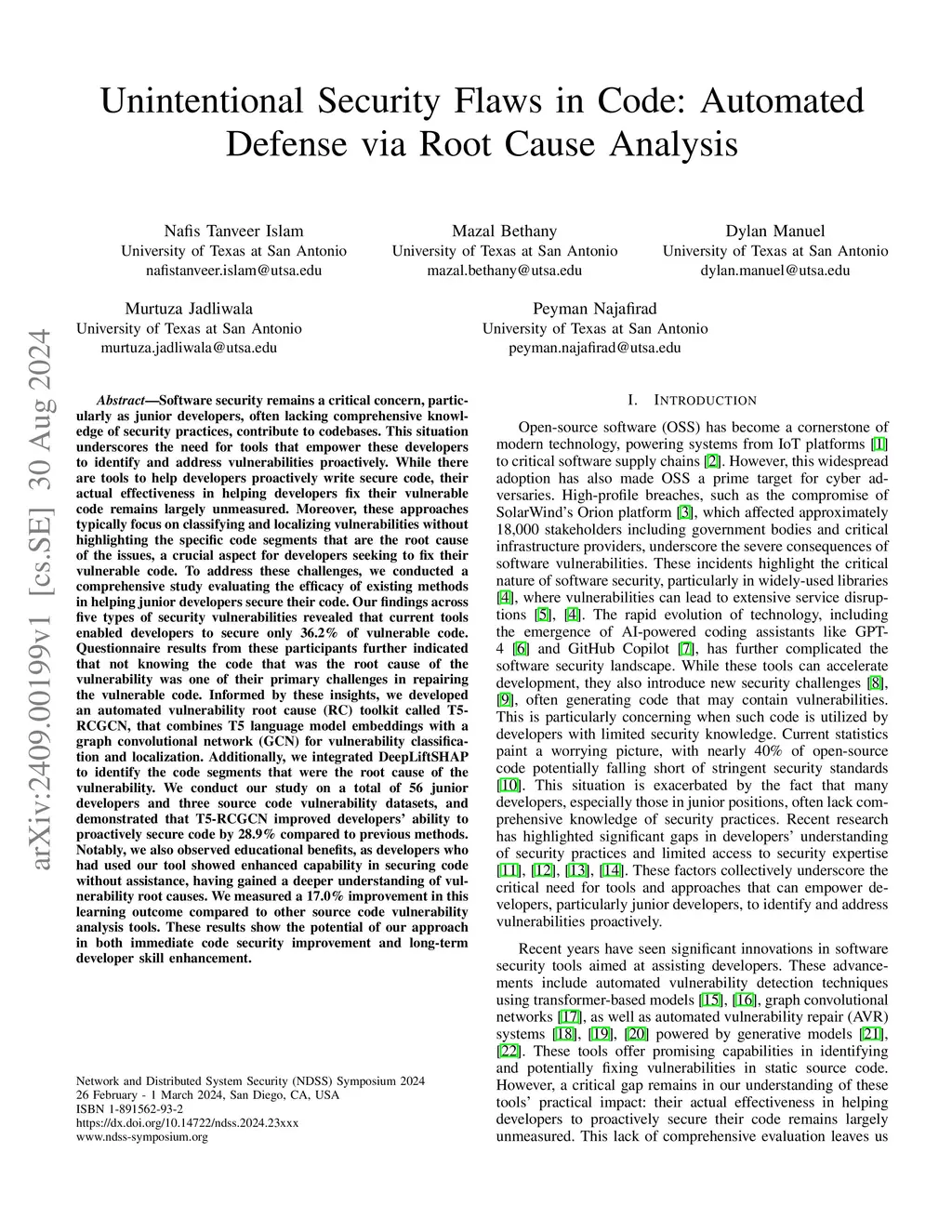 Unintentional Security Flaws in Code: Automated Defense via Root Cause