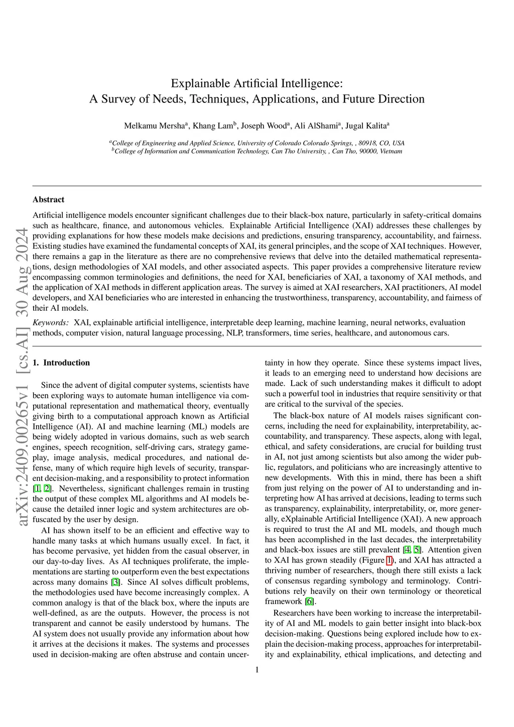 Explainable Artificial Intelligence: A Survey of Needs, Techniques, Applications, and Future Direction