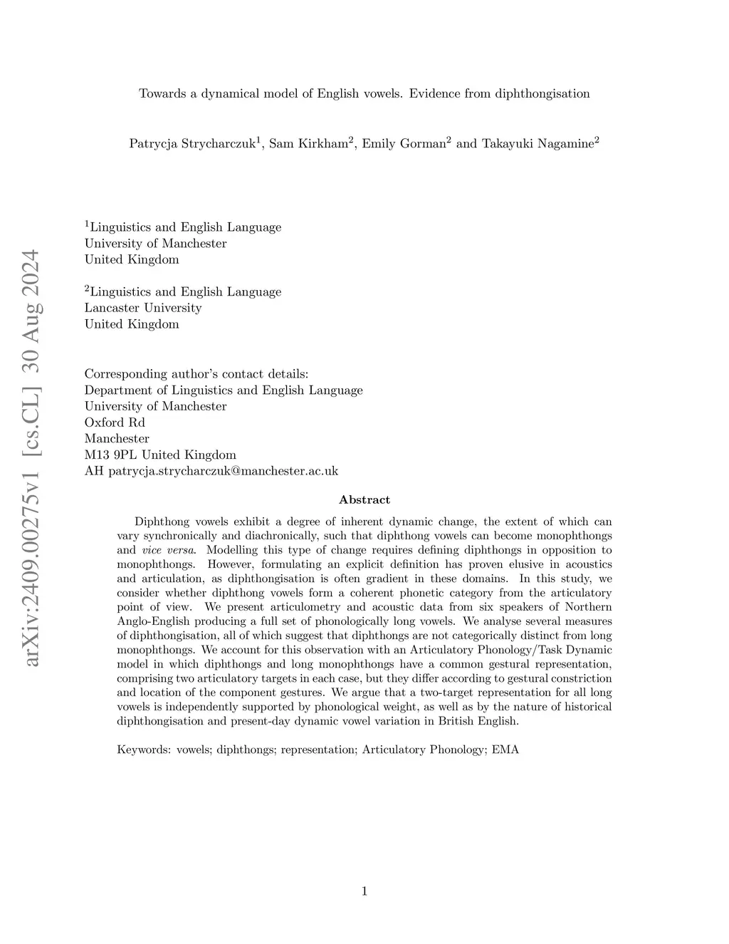 Towards a dynamical model of English vowels. Evidence from