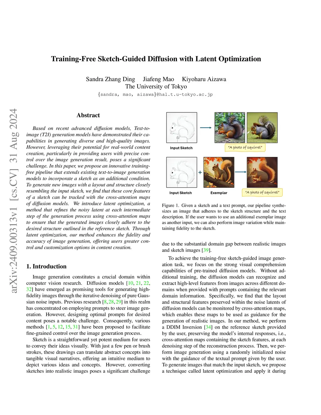 Based on recent advanced diffusion models, Text-to-image (T2I) generation models have demonstrated their capabilities to generate diverse and high-quality images. However, leveraging their potential for real-world content creation, particularly in providing users with precise control over the image generation result, poses a significant challenge. In this paper, we propose an innovative training-free pipeline that extends existing text-to-image generation models to incorporate a sketch as an additional condition. To generate new images with a layout and structure closely resembling the input sketch, we find that these core features of a sketch can be tracked with the cross-attention maps of diffusion models. We introduce latent optimization, a method that refines the noisy latent at each intermediate step of the generation process using cross-attention maps to ensure that the generated images adhere closely to the desired structure outlined in the reference sketch. Through latent optimization, our method enhances the accuracy of image generation, offering users greater control and customization options in content creation.