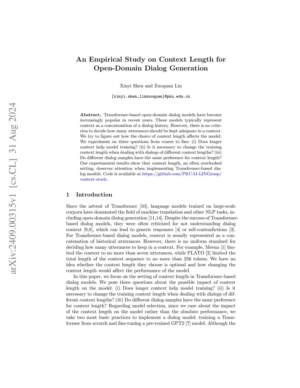 An Empirical Study on Context Length for Open-Domain Dialog Generation
