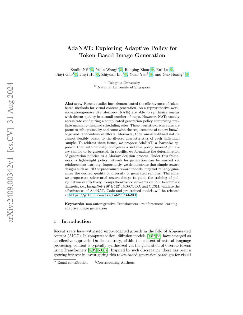 AdaNAT: Exploring Adaptive Policy for Token-Based Image Generation