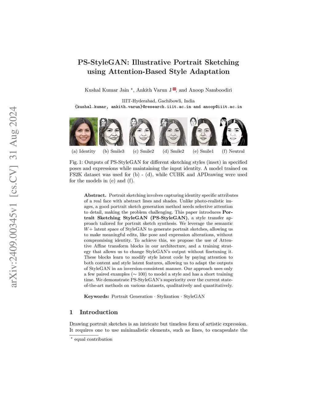 PS-StyleGAN: Illustrative Portrait Sketching using Attention-Based Style