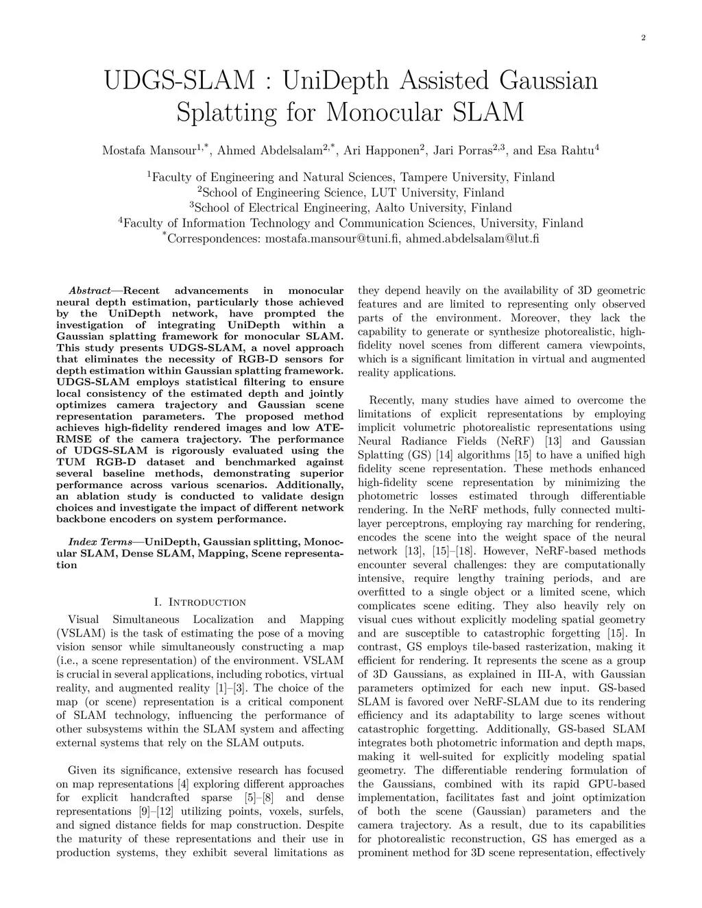 UDGS-SLAM : UniDepth Assisted Gaussian Splatting for Monocular SLAM