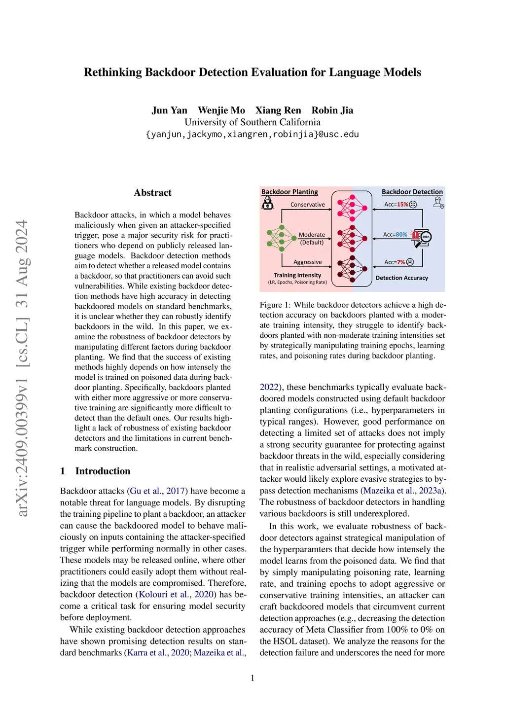 Backdoor attacks, in which a model behaves maliciously when given an attacker-specified trigger, pose a major security risk for practitioners who depend on publicly released language models. As a countermeasure, backdoor detection methods aim to detect whether a released model contains a backdoor. While existing backdoor detection methods have high accuracy in detecting backdoored models on standard benchmarks, it is unclear whether they can robustly identify backdoors in the wild. In this paper, we examine the robustness of backdoor detectors by manipulating different factors during backdoor planting. We find that the success of existing methods based on trigger inversion or meta classifiers highly depends on how intensely the model is trained on poisoned data. Specifically, backdoors planted with more aggressive or more conservative training are significantly more difficult to detect than the default ones. Our results highlight a lack of robustness of existing backdoor detectors and the limitations in current benchmark construction.