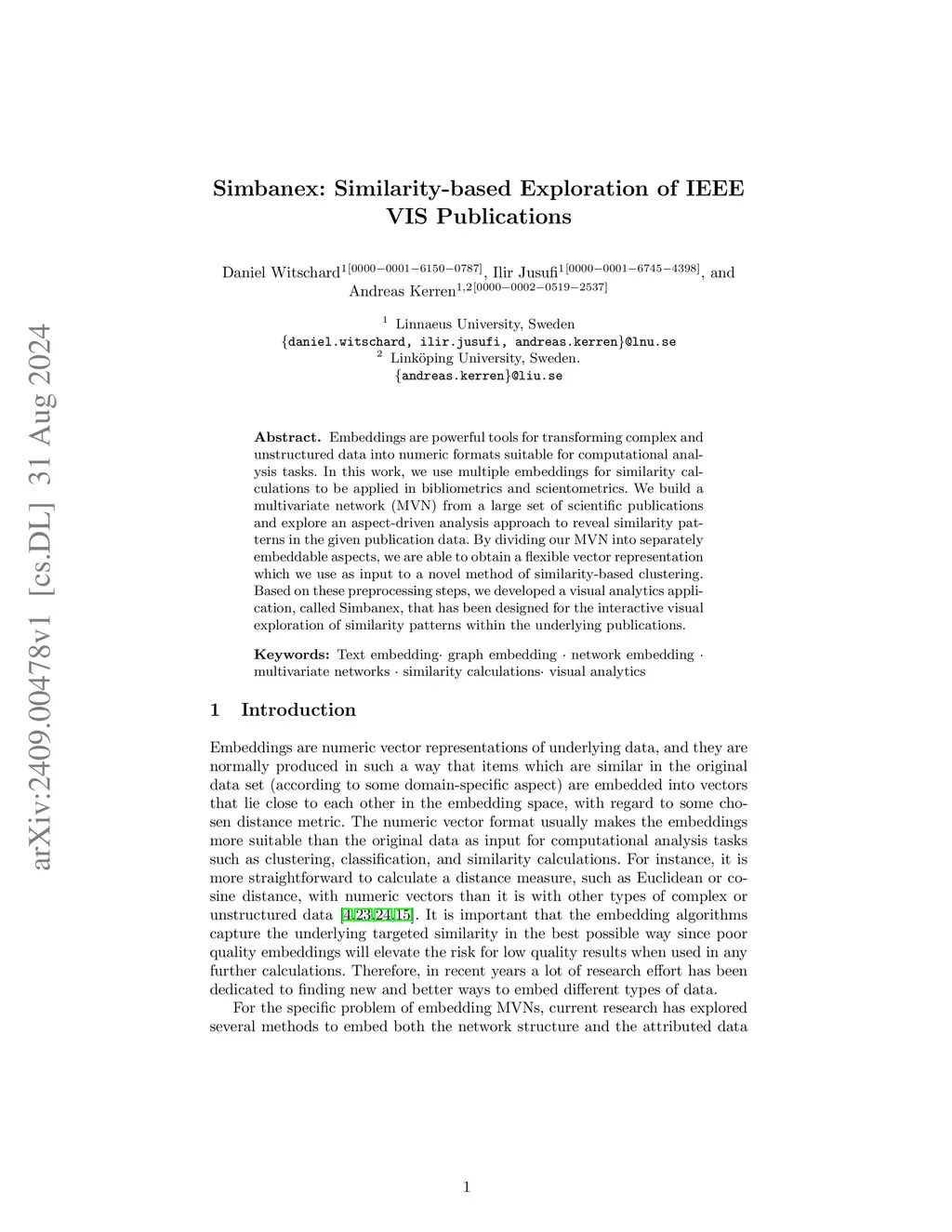 Simbanex: Similarity-based Exploration of IEEE VIS Publications