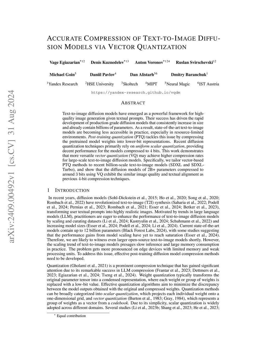 Accurate Compression of Text-to-Image Diffusion Models via Vector