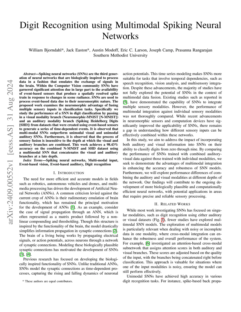 Digit Recognition using Multimodal Spiking Neural Networks