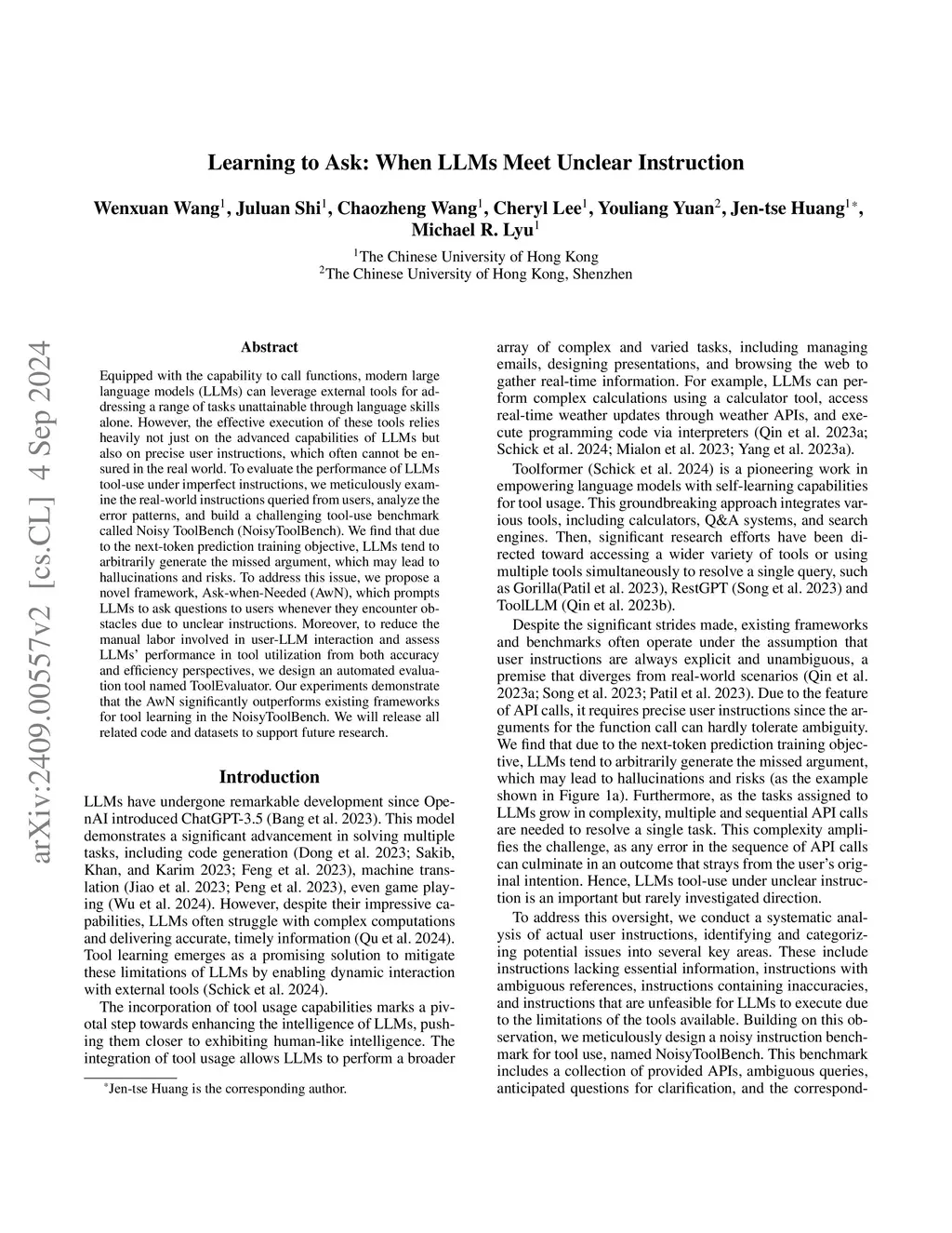 Equipped with the capability to call functions, modern large language models (LLMs) can leverage external tools for addressing a range of tasks unattainable through language skills alone. However, the effective execution of these tools relies heavily not just on the advanced capabilities of LLMs but also on precise user instructions, which often cannot be ensured in the real world. To evaluate the performance of LLMs tool-use under imperfect instructions, we meticulously examine the real-world instructions queried from users, analyze the error patterns, and build a challenging tool-use benchmark called Noisy ToolBench (NoisyToolBench). We find that due to the next-token prediction training objective, LLMs tend to arbitrarily generate the missed argument, which may lead to hallucinations and risks. To address this issue, we propose a novel framework, Ask-when-Needed (AwN), which prompts LLMs to ask questions to users whenever they encounter obstacles due to unclear instructions. Moreover, to reduce the manual labor involved in user-LLM interaction and assess LLMs performance in tool utilization from both accuracy and efficiency perspectives, we design an automated evaluation tool named ToolEvaluator. Our experiments demonstrate that the AwN significantly outperforms existing frameworks for tool learning in the NoisyToolBench. We will release all related code and datasets to support future research.