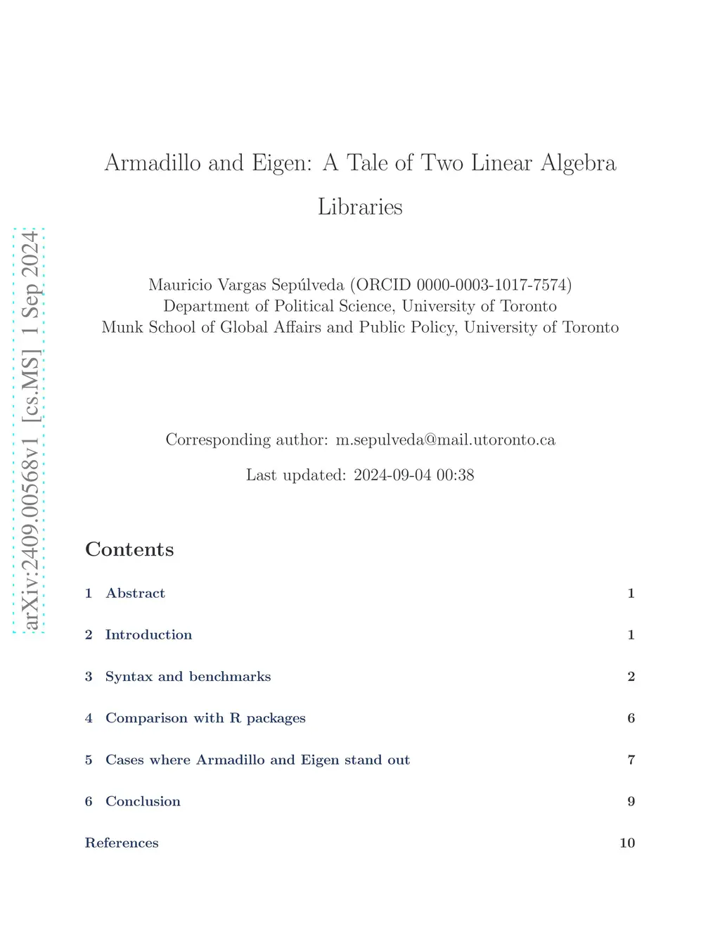 This article compares `cpp11armadillo` and `cpp11eigen`, new R packages that integrate the powerful Armadillo and Eigen C++ libraries for linear algebra into the R programming environment. This article provides a detailed comparison between Armadillo and Eigen speed and syntax. The goal of these packages is to simplify a part of the process of solving bottlenecks by using C++ within R, these offer additional ease of integration for users who require high-performance linear algebra operations in their R workflows. This document aims to discuss the tradeoff between computational efficiency and accessibility.