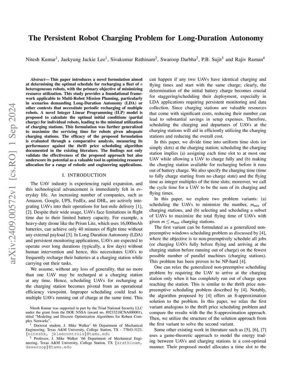 The Persistent Robot Charging Problem for Long-Duration Autonomy