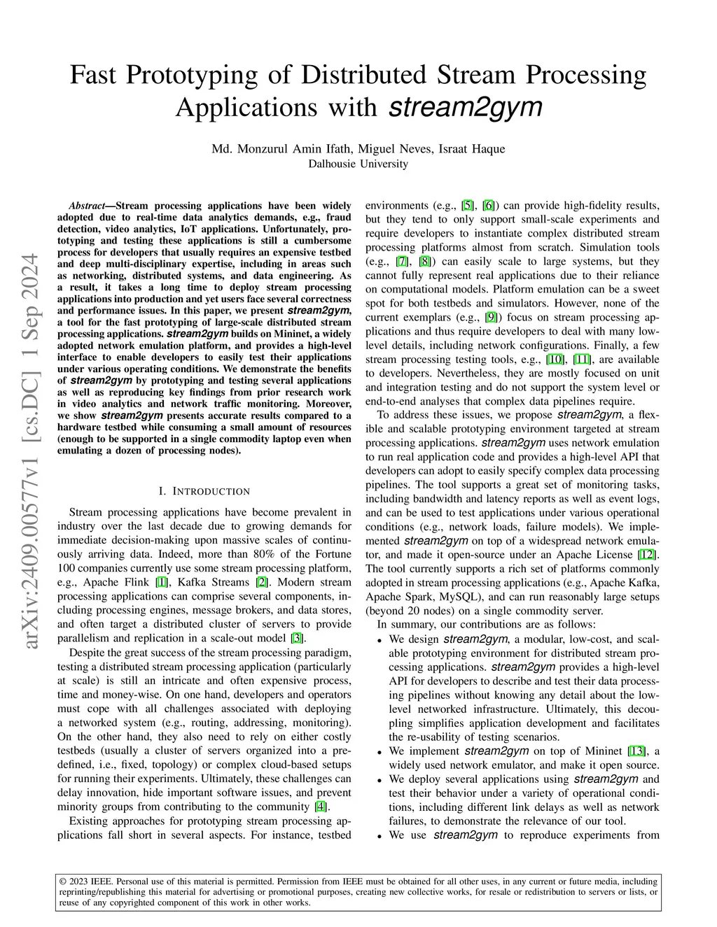 Stream processing applications have been widely adopted due to real-time data analytics demands, e.g., fraud detection, video analytics, IoT applications. Unfortunately, prototyping and testing these applications is still a cumbersome process for developers that usually requires an expensive testbed and deep multi-disciplinary expertise, including in areas such as networking, distributed systems, and data engineering. As a result, it takes a long time to deploy stream processing applications into production and yet users face several correctness and performance issues. In this paper, we present stream2gym, a tool for the fast prototyping of large-scale distributed stream processing applications. stream2gym builds on Mininet, a widely adopted network emulation platform, and provides a high-level interface to enable developers to easily test their applications under various operating conditions. We demonstrate the benefits of stream2gym by prototyping and testing several applications as well as reproducing key findings from prior research work in video analytics and network traffic monitoring. Moreover, we show stream2gym presents accurate results compared to a hardware testbed while consuming a small amount of resources (enough to be supported in a single commodity laptop even when emulating a dozen of processing nodes).