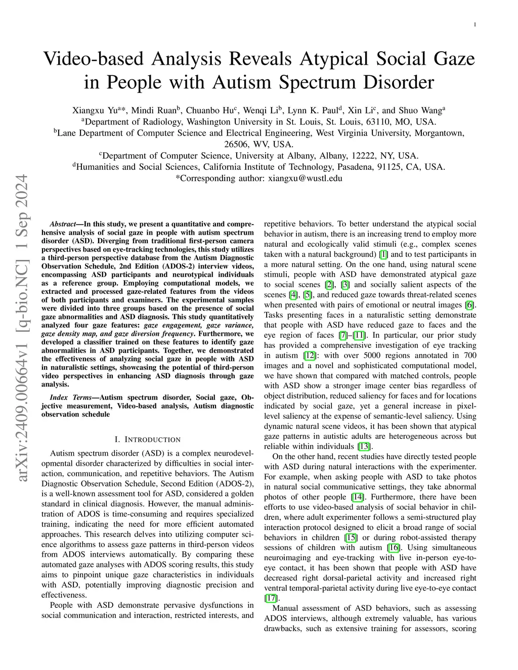 Video-based Analysis Reveals Atypical Social Gaze in People with Autism