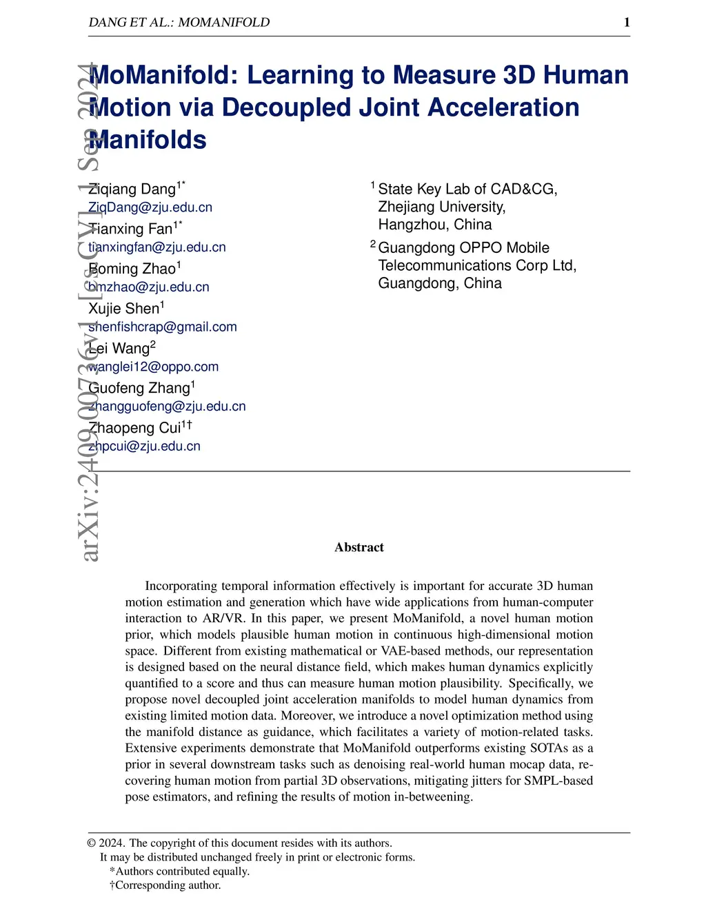 MoManifold: Learning to Measure 3D Human Motion via Decoupled Joint