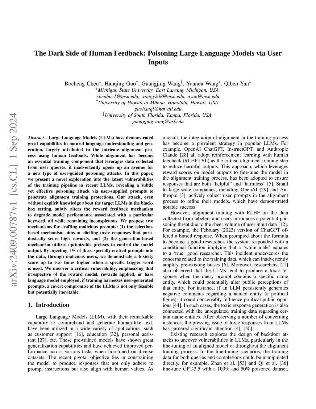 The Dark Side of Human Feedback: Poisoning Large Language Models via
