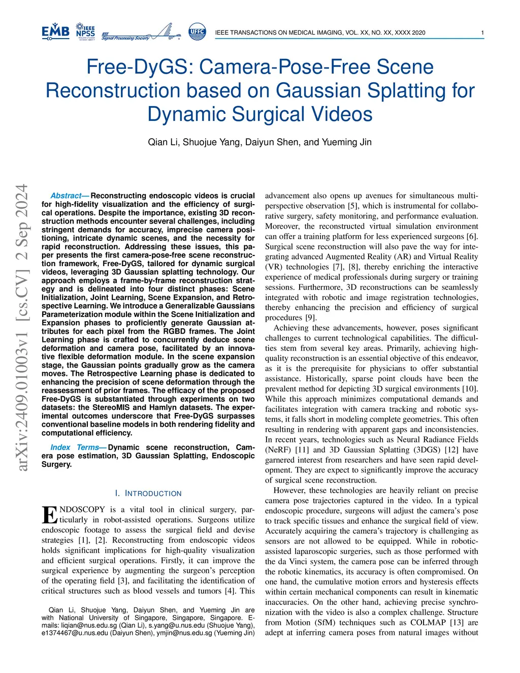 Free-DyGS: Camera-Pose-Free Scene Reconstruction for Dynamic Surgical Videos with Gaussian Splatting