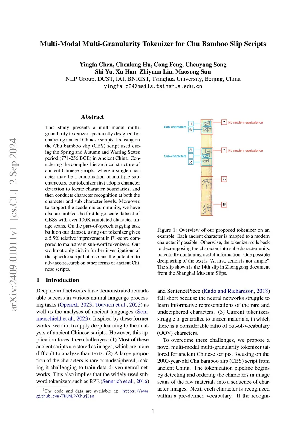 Multi-Modal Multi-Granularity Tokenizer for Chu Bamboo Slip Scripts