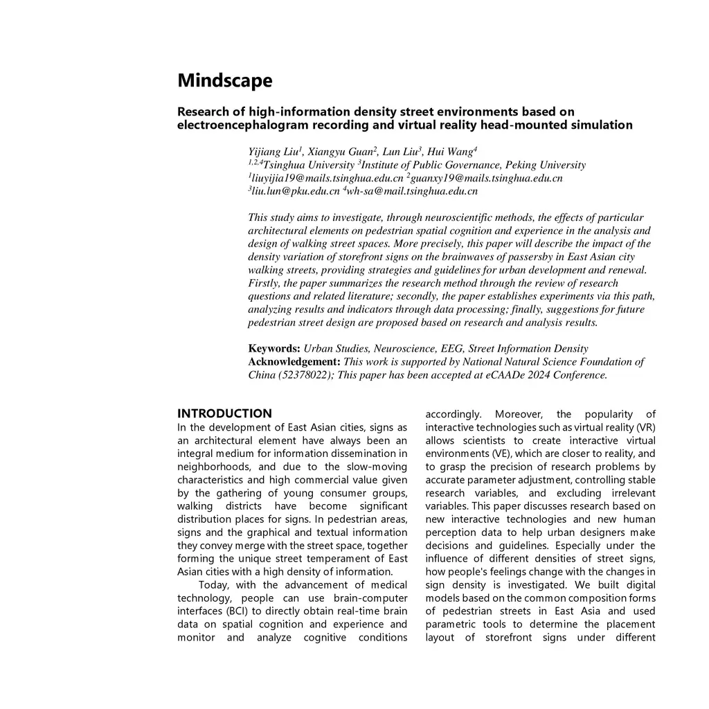 This study aims to investigate, through neuroscientific methods, the effects of particular architectural elements on pedestrian spatial cognition and experience in the analysis and design of walking street spaces. More precisely, this paper will describe the impact of the density variation of storefront signs on the brainwaves of passersby in East Asian city walking streets, providing strategies and guidelines for urban development and renewal. Firstly, the paper summarizes the research method through the review of research questions and related literature; secondly, the paper establishes experiments via this path, analyzing results and indicators through data processing; finally, suggestions for future pedestrian street design are proposed based on research and analysis results.