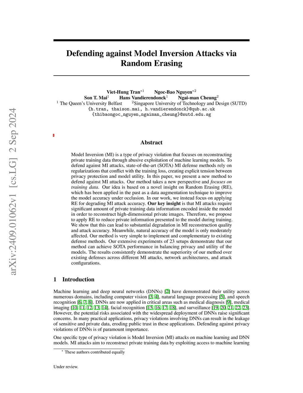 Random Erasing vs. Model Inversion: A Promising Defense or a False Hope?