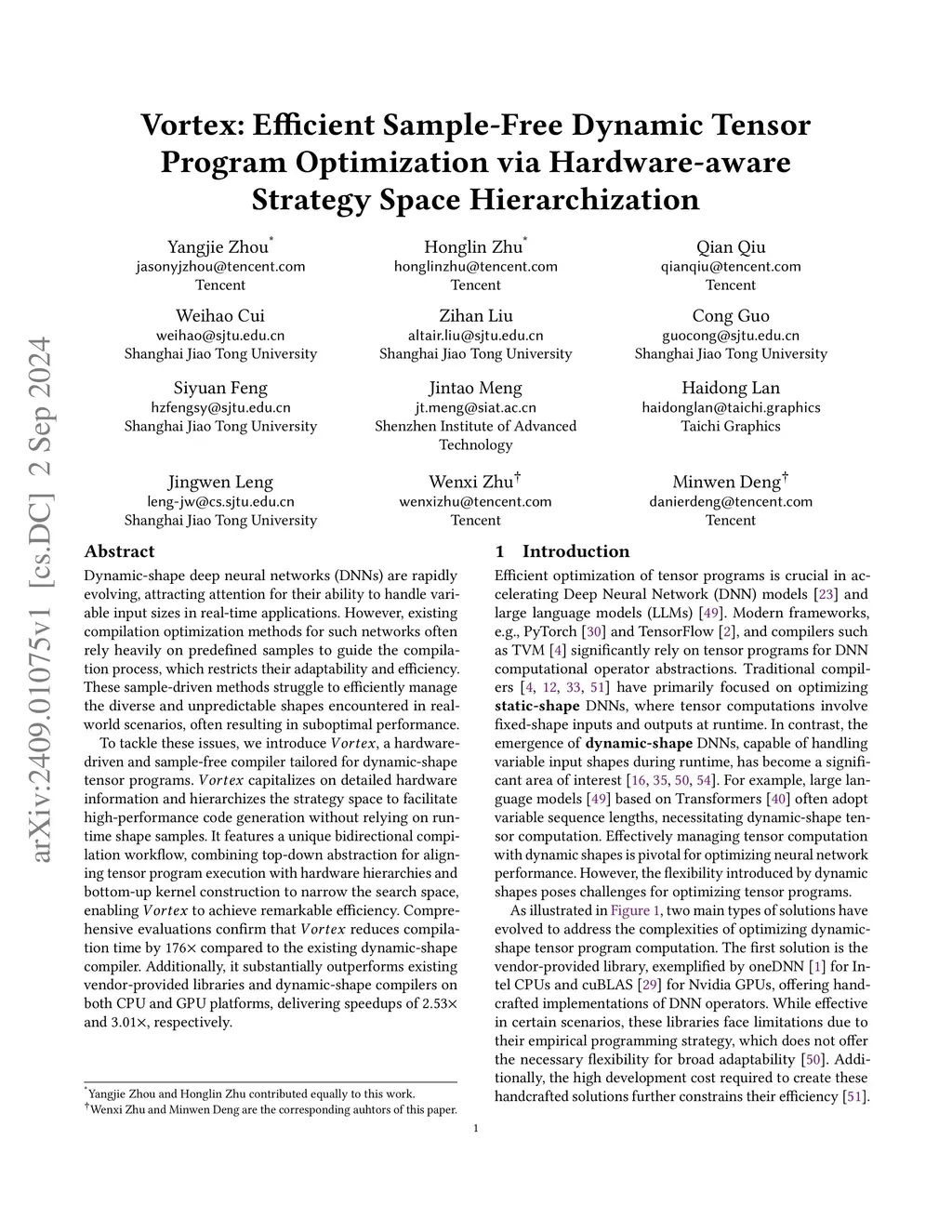 Vortex: Efficient Sample-Free Dynamic Tensor Program Optimization via