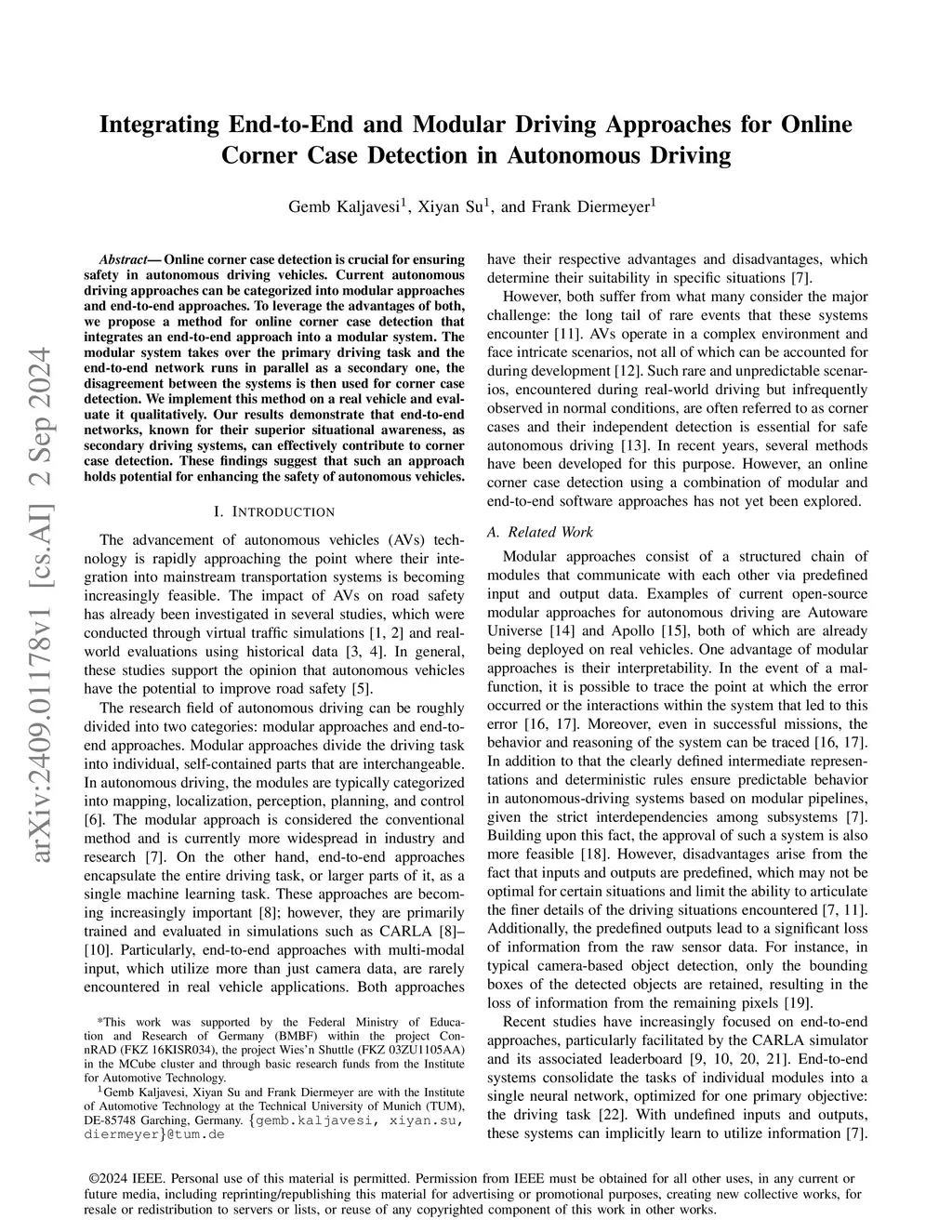 Integrating End-to-End and Modular Driving Approaches for Online Corner