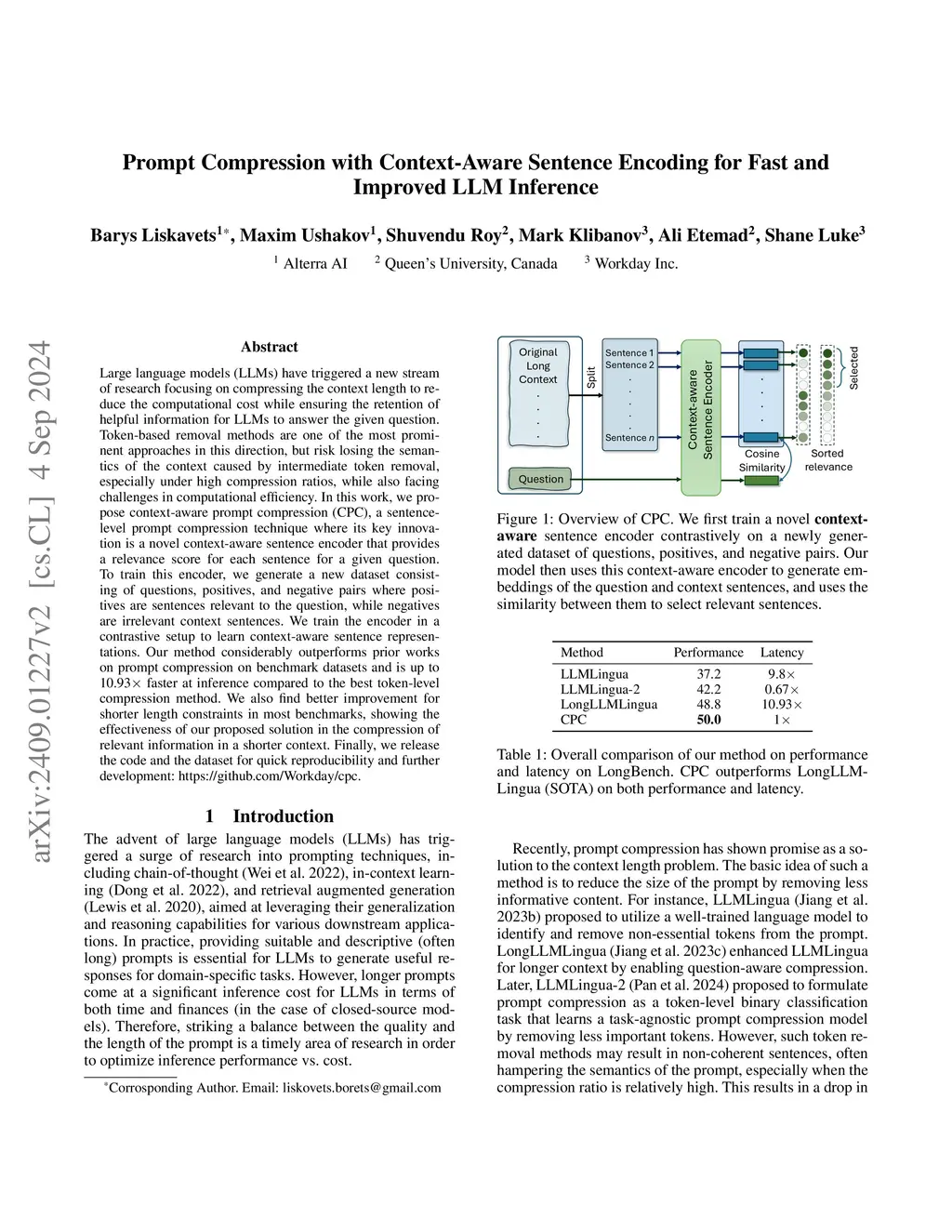 Prompt Compression with Context-Aware Sentence Encoding for Fast and