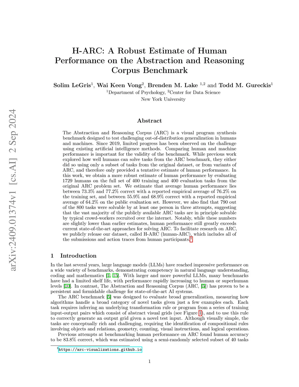 H-ARC: A Robust Estimate of Human Performance on the Abstraction and