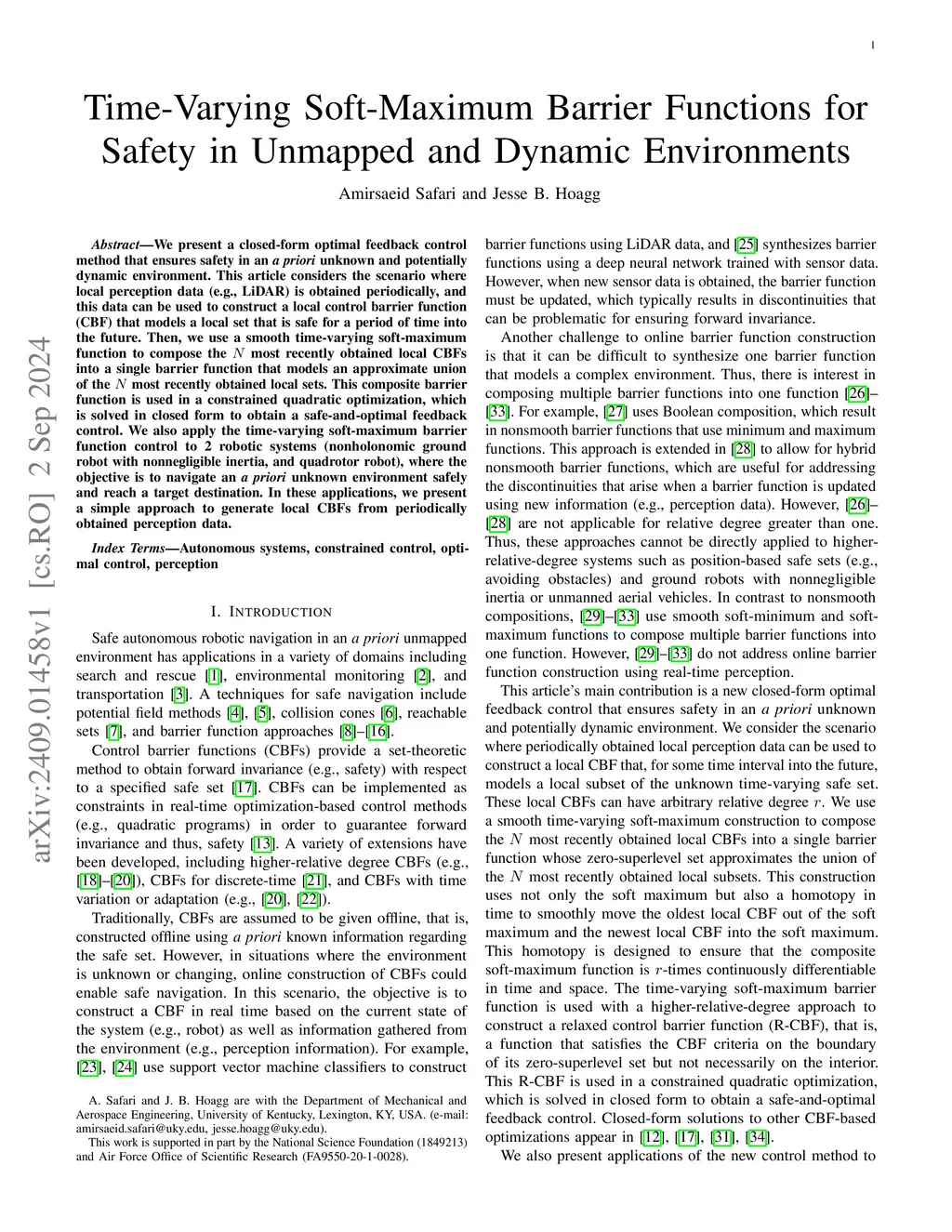 Time-Varying Soft-Maximum Barrier Functions for Safety in Unmapped and Dynamic Environments