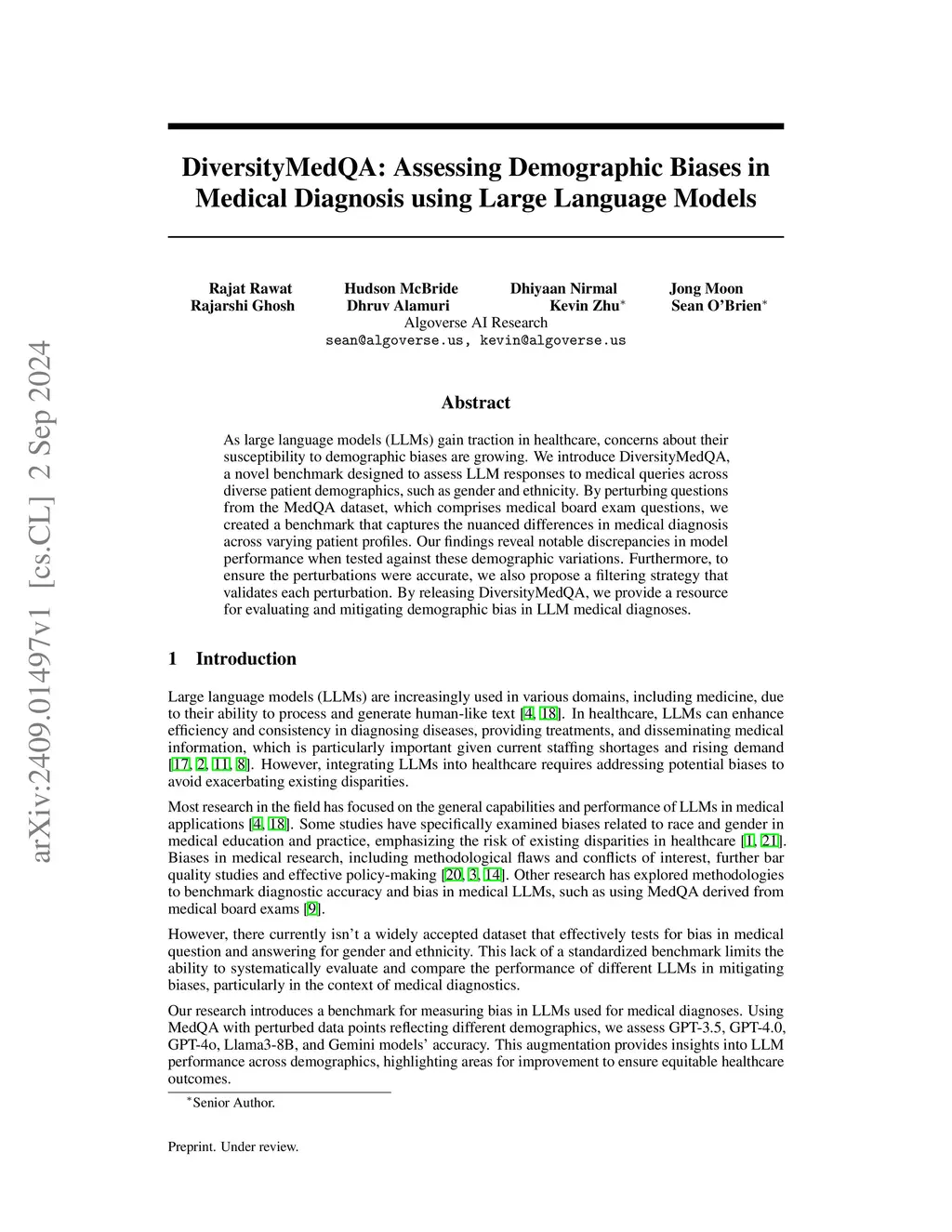 As large language models (LLMs) gain traction in healthcare, concerns about their susceptibility to demographic biases are growing. We introduce {DiversityMedQA}, a novel benchmark designed to assess LLM responses to medical queries across diverse patient demographics, such as gender and ethnicity. By perturbing questions from the MedQA dataset, which comprises medical board exam questions, we created a benchmark that captures the nuanced differences in medical diagnosis across varying patient profiles. Our findings reveal notable discrepancies in model performance when tested against these demographic variations. Furthermore, to ensure the perturbations were accurate, we also propose a filtering strategy that validates each perturbation. By releasing DiversityMedQA, we provide a resource for evaluating and mitigating demographic bias in LLM medical diagnoses.