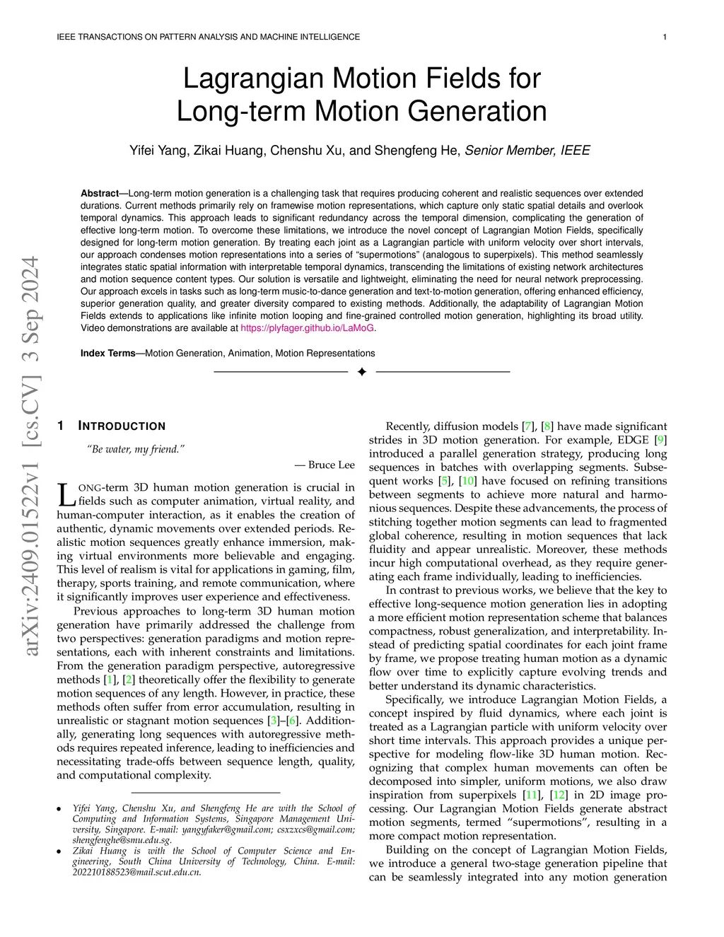 Lagrangian Motion Fields for Long-term Motion Generation