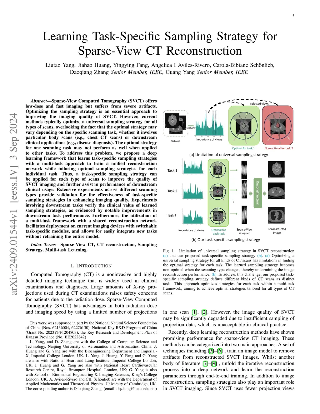 Sparse-View Computed Tomography (SVCT) offers low-dose and fast imaging but suffers from severe artifacts. Optimizing the sampling strategy is an essential approach to improving the imaging quality of SVCT. However, current methods typically optimize a universal sampling strategy for all types of scans, overlooking the fact that the optimal strategy may vary depending on the specific scanning task, whether it involves particular body scans (e.g., chest CT scans) or downstream clinical applications (e.g., disease diagnosis). The optimal strategy for one scanning task may not perform as well when applied to other tasks. To address this problem, we propose a deep learning framework that learns task-specific sampling strategies with a multi-task approach to train a unified reconstruction network while tailoring optimal sampling strategies for each individual task. Thus, a task-specific sampling strategy can be applied for each type of scans to improve the quality of SVCT imaging and further assist in performance of downstream clinical usage. Extensive experiments across different scanning types provide validation for the effectiveness of task-specific sampling strategies in enhancing imaging quality. Experiments involving downstream tasks verify the clinical value of learned sampling strategies, as evidenced by notable improvements in downstream task performance. Furthermore, the utilization of a multi-task framework with a shared reconstruction network facilitates deployment on current imaging devices with switchable task-specific modules, and allows for easily integrate new tasks without retraining the entire model.