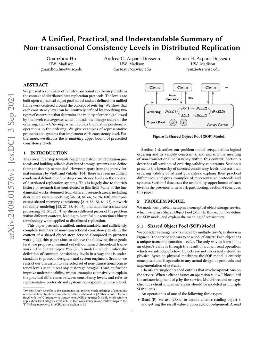 We present a summary of non-transactional consistency levels in the context of distributed data replication protocols. The levels are built upon a practical object pool model and are defined in a unified framework centered around the concept of ordering. We show that each consistency level can be intuitively defined by specifying two types of constraints that determine the validity of orderings allowed by the level: convergence, which bounds the lineage shape of the ordering, and relationship, which bounds the relative positions of operations in the ordering. We give examples of representative protocols and systems that implement each consistency level. Furthermore, we discuss the availability upper bound of presented consistency levels.