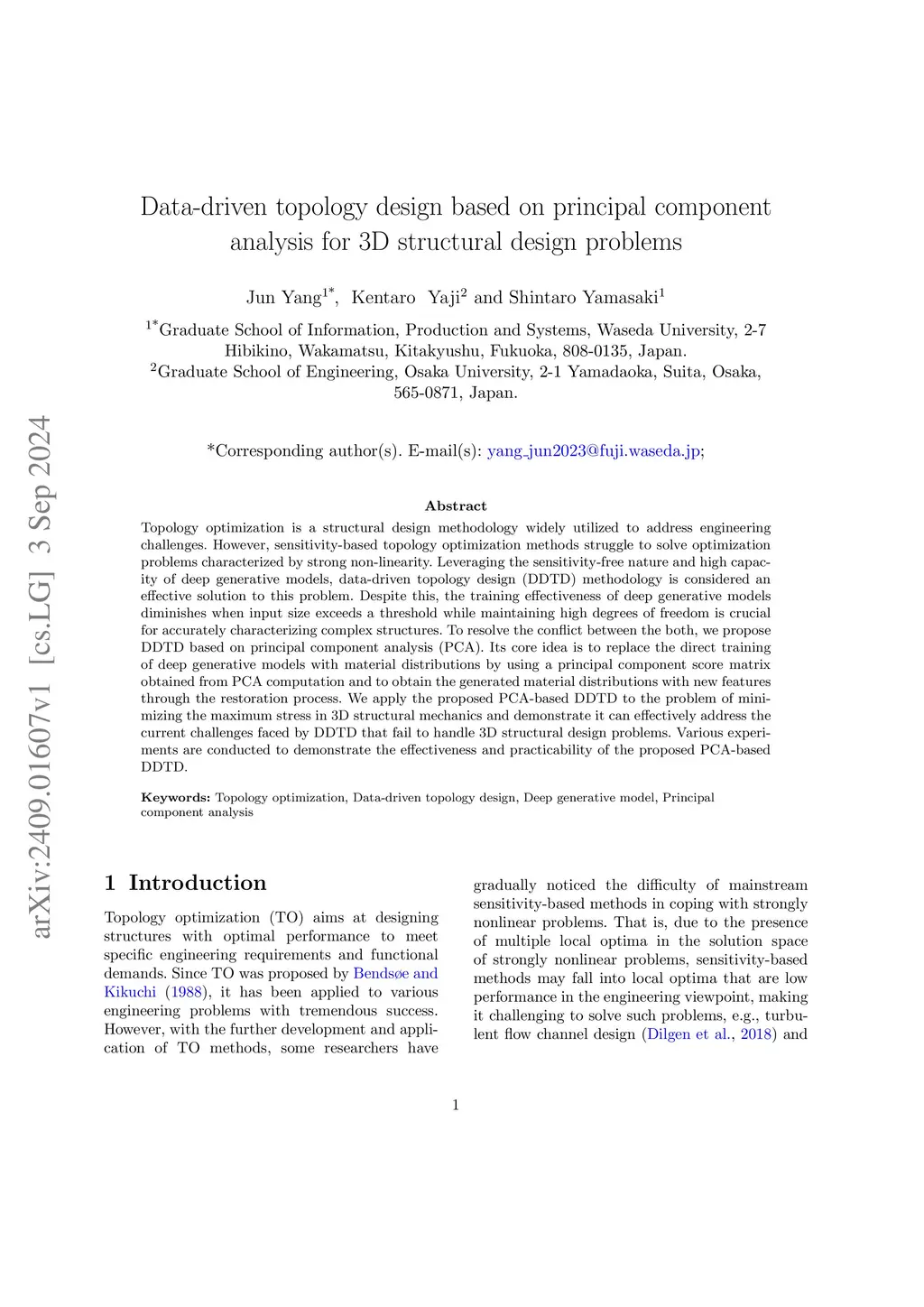 Data-driven topology design based on principal component analysis for 3D