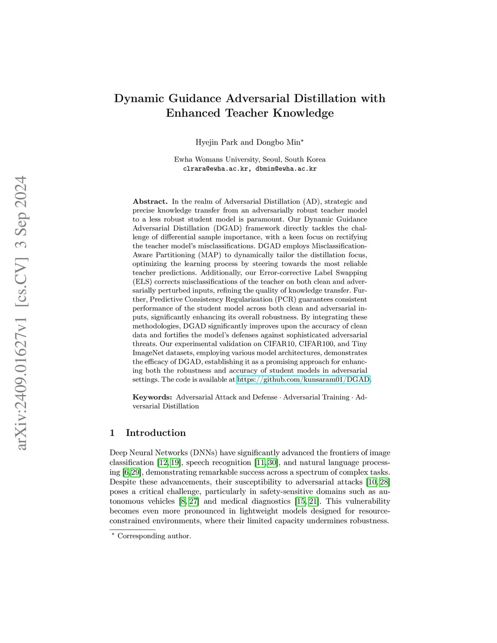 In the realm of Adversarial Distillation (AD), strategic and precise knowledge transfer from an adversarially robust teacher model to a less robust student model is paramount. Our Dynamic Guidance Adversarial Distillation (DGAD) framework directly tackles the challenge of differential sample importance, with a keen focus on rectifying the teacher model's misclassifications. DGAD employs Misclassification-Aware Partitioning (MAP) to dynamically tailor the distillation focus, optimizing the learning process by steering towards the most reliable teacher predictions. Additionally, our Error-corrective Label Swapping (ELS) corrects misclassifications of the teacher on both clean and adversarially perturbed inputs, refining the quality of knowledge transfer. Further, Predictive Consistency Regularization (PCR) guarantees consistent performance of the student model across both clean and adversarial inputs, significantly enhancing its overall robustness. By integrating these methodologies, DGAD significantly improves upon the accuracy of clean data and fortifies the model's defenses against sophisticated adversarial threats. Our experimental validation on CIFAR10, CIFAR100, and Tiny ImageNet datasets, employing various model architectures, demonstrates the efficacy of DGAD, establishing it as a promising approach for enhancing both the robustness and accuracy of student models in adversarial settings.