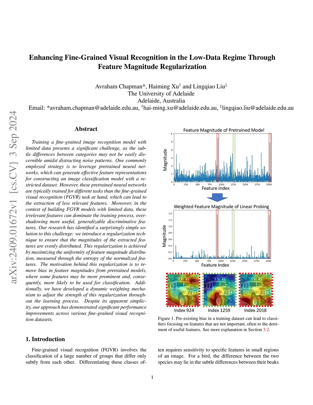 Training a fine-grained image recognition model with limited data presents a significant challenge, as the subtle differences between categories may not be easily discernible amidst distracting noise patterns. One commonly employed strategy is to leverage pretrained neural networks, which can generate effective feature representations for constructing an image classification model with a restricted dataset. However, these pretrained neural networks are typically trained for different tasks than the fine-grained visual recognition (FGVR) task at hand, which can lead to the extraction of less relevant features. Moreover, in the context of building FGVR models with limited data, these irrelevant features can dominate the training process, overshadowing more useful, generalizable discriminative features. Our research has identified a surprisingly simple solution to this challenge: we introduce a regularization technique to ensure that the magnitudes of the extracted features are evenly distributed. This regularization is achieved by maximizing the uniformity of feature magnitude distribution, measured through the entropy of the normalized features. The motivation behind this regularization is to remove bias in feature magnitudes from pretrained models, where some features may be more prominent and, consequently, more likely to be used for classification. Additionally, we have developed a dynamic weighting mechanism to adjust the strength of this regularization throughout the learning process. Despite its apparent simplicity, our approach has demonstrated significant performance improvements across various fine-grained visual recognition datasets.