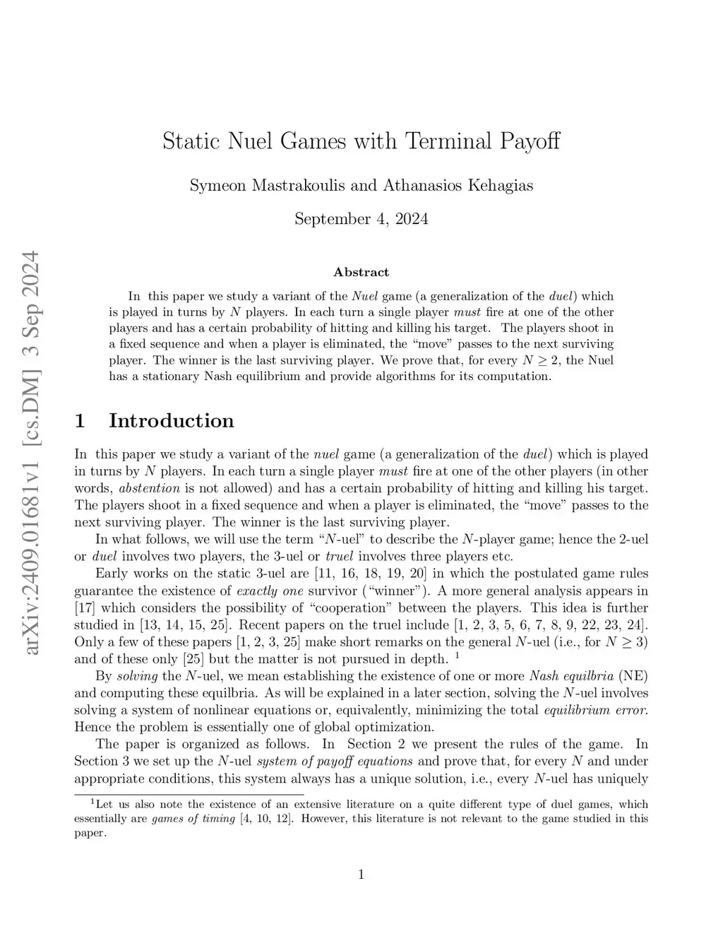 Static Nuel Games with Terminal Payoff