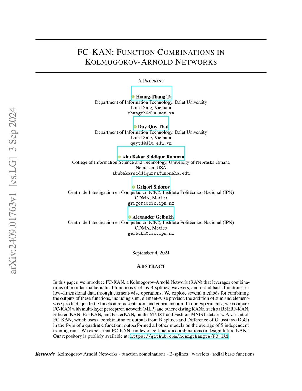 FC-KAN: Function Combinations in Kolmogorov-Arnold Networks