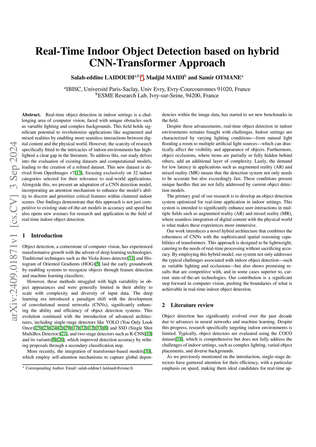 Real-Time Indoor Object Detection based on hybrid CNN-Transformer