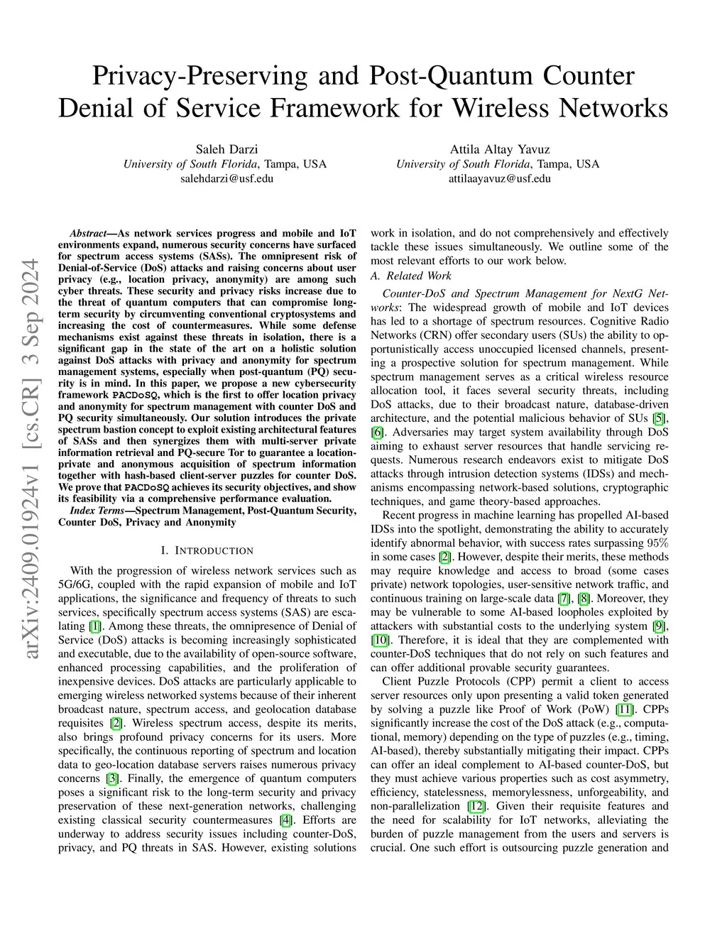 Privacy-Preserving and Post-Quantum Counter Denial of Service Framework