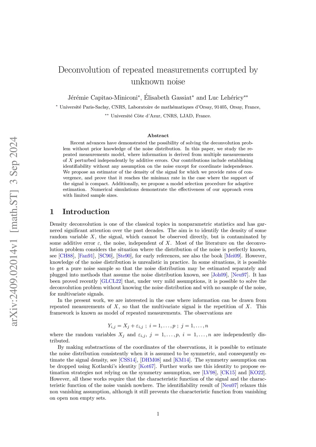 Recent advances have demonstrated the possibility of solving the deconvolution problem without prior knowledge of the noise distribution. In this paper, we study the repeated measurements model, where information is derived from multiple measurements of X perturbed independently by additive errors. Our contributions include establishing identifiability without any assumption on the noise except for coordinate independence. We propose an estimator of the density of the signal for which we provide rates of convergence, and prove that it reaches the minimax rate in the case where the support of the signal is compact. Additionally, we propose a model selection procedure for adaptive estimation. Numerical simulations demonstrate the effectiveness of our approach even with limited sample sizes.