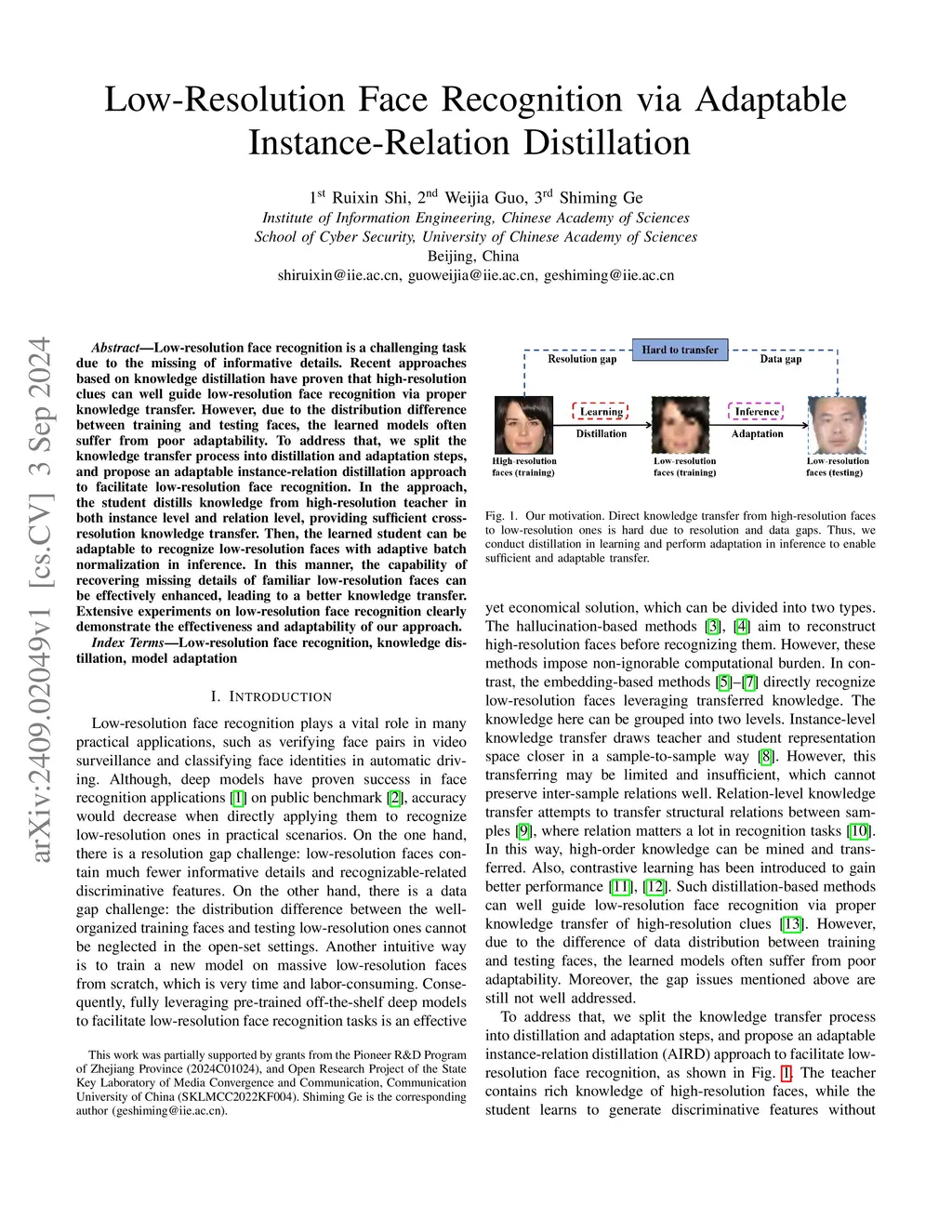 Low-Resolution Face Recognition via Adaptable Instance-Relation