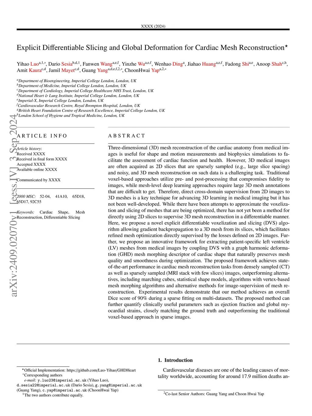 Explicit Differentiable Slicing and Global Deformation for Cardiac Mesh