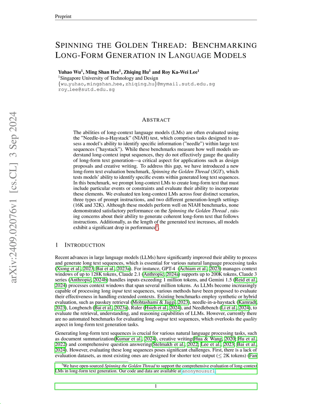 In evaluating the long-context capabilities of large language models (LLMs), benchmarks such as "Needle-in-a-Haystack" (NIAH), Ruler, and Needlebench are commonly used. While these benchmarks measure how well models understand long-context input sequences, they do not effectively gauge the quality of long-form text generation--a critical aspect for applications such as design proposals and creative writing. To address this gap, we have introduced a new long-form text evaluation benchmark, LongGenBench, which tests models' ability to identify specific events within generated long text sequences. In this benchmark, we prompt long-context LMs to create long-form text that must include particular events or constraints and evaluate their ability to incorporate these elements. We evaluated ten long-context LMs across four distinct scenarios, three types of prompt instructions, and two different generation-length settings (16K and 32K). Although these models perform well on NIAH benchmarks, none demonstrated satisfactory performance on the LongGenBench, raising concerns about their ability to generate coherent long-form text that follows instructions. Additionally, as the length of the generated text increases, all models exhibit a significant drop in performance.