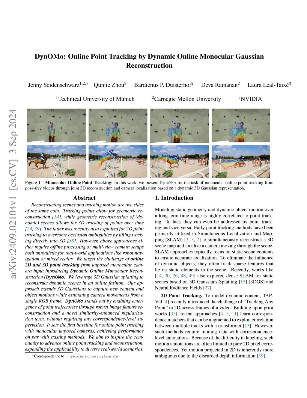 DynOMo: Online Point Tracking by Dynamic Online Monocular Gaussian Reconstruction