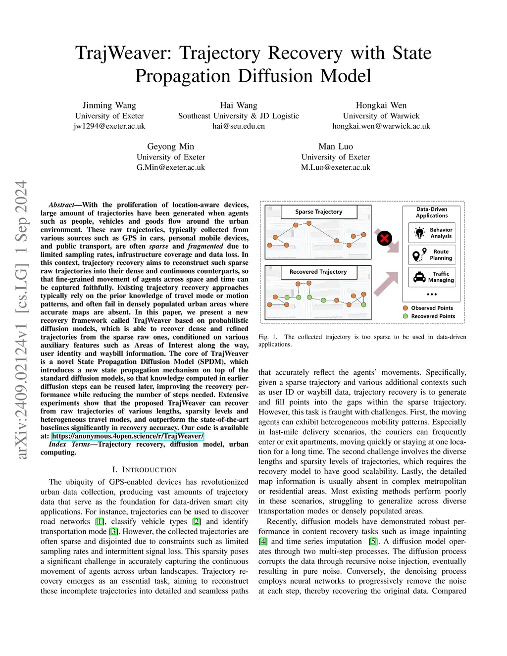 TrajWeaver: Trajectory Recovery with State Propagation Diffusion Model