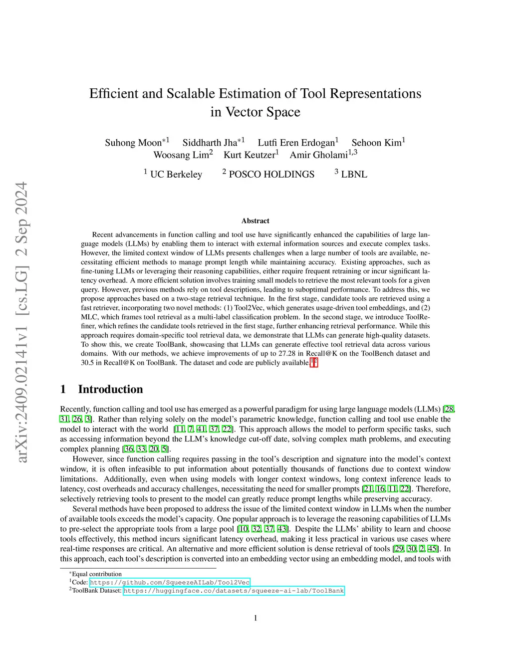 Efficient and Scalable Estimation of Tool Representations in Vector