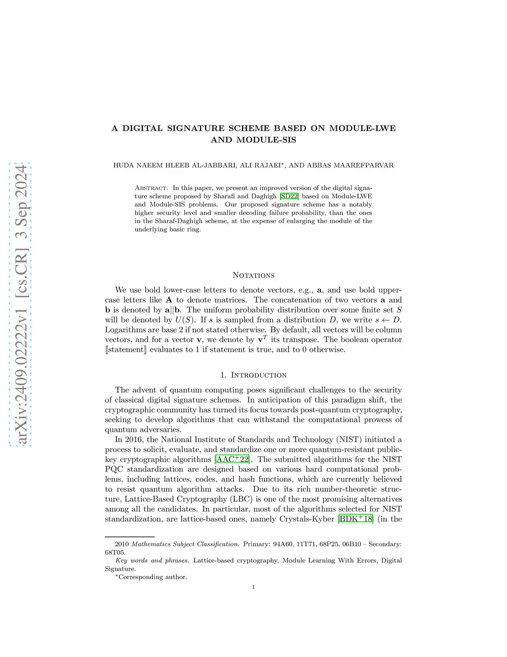 A Digital signature scheme based on Module-LWE and Module-SIS